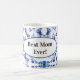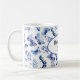 Diese Keramik Kaffee-Tasse wird mit einem hübschen blauen Schmetterlingsprint mit einer Nachricht für die Mama gezeigt. Passen Sie dieses Objekt an oder kaufen Sie, wie es ist. Bild