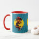 Schwarzer Drache mit roten Details sieht furchtbar silhouettiert gegen einen goldenen Mond aus.