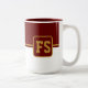 Die Tasse des Kaffees wird hier mit einem farbigen Blockstil-Druck mit einem Beispielbuchstaben gezeigt, die Farben anpassen und ändern und Buchstaben oder kaufen, wie es ist. Farben Maroon, Gold, Weiß Passen Sie dieses Objekt an oder kaufen Sie, wie es ist.