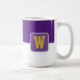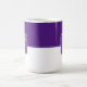 Die Tasse des Kaffees wird hier mit einem farbigen Blockstil-Druck mit einem Beispielbuchstaben gezeigt, die Farben anpassen und ändern und Buchstaben oder kaufen, wie es ist. Farben Lila, Weiß Passen Sie dieses Objekt an oder kaufen Sie, wie es ist.