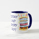 Eine hochwertige weiße Ringer-Tasse mit dunkelblauem Rand und Griff. Das handgemalte Design ist ein Vatertagskuchen und eine Erinnerung, die jeden Tag "Vatertag" ist. Siehe auch passende Grußkarte und Bekleidung. Geschirrspüler und Mikrowelle.