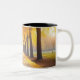 Tasse, zeichnend Goldener Herbst im Park. Zeigt einen Park, Bänke, Blätter und Bäume. In der Mitte befindet sich ein Fußgängerweg.
