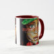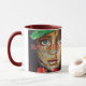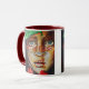 Zweifarbige Tasse mit dem Gemälde "Eve and the Serpent" von Veronica McDonald mit Herz of Fleisch Literary Journal Text. Heart of Flesh Literary Journal ist eine halbjährliche Christliche Zeitschrift, die Gedichte, Geschichten und Kunst veröffentlicht.