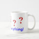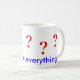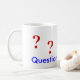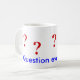 Fragezeichen in rot. 5 sind um die Tasse verteilt. Unten ist der Text in blau "Fragen Sie alles"
