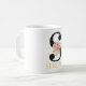 Letter S Monogramm mit Aquarellfarben-Blume und Blätter auf einem schwarzen Buchstaben. Perfekt für persönliche und geschenkte Zwecke mit Namenspersonalisierung.