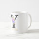 Letter Y Monogramm mit Aquarellfarben-Blume und Blätter auf einem schwarzen Buchstaben. Perfekt für persönliche und geschenkte Zwecke mit Namenspersonalisierung.