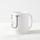 Letter U Monogramm mit Aquarellfarben-Blume und Blätter auf einem schwarzen Buchstaben. Perfekt für persönliche und geschenkte Zwecke mit Namenspersonalisierung.