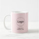 Rosa Tasse mit dem Logo für kleine Unternehmen. Fügen Sie Ihr eigenes Firmenlogo hinzu und passen Sie es mit Ihrem eigenen Text an. Wenn Sie weitere Anpassungen benötigen, lass mir bitte Bescheid.