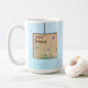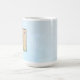 Tasse mit individuellem Teeback. Sweet summermug mit einem gedruckten Teesack mit individualisierbarem Text, um Ihren besonderen Geschmack hinzuzufügen. Ex. "Geschmack von: Sommer." oder fügen Sie Ihren Namen hinzu: "Geschmack von: Charlotte" oder "Charlottes Liebling". Ideal für jeden Teeliebhaber. Hier auf einem hellen und blauen Hintergrund.