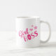 Die Tasse Coffee Boss Branded Coffee mit einem trendigen typografischen Design, das die Wörter "Girl Boss" in einem trendigen Skript wiedergibt, das in jeder lebendigen Farbe erhältlich ist. Begleitet von charmanten Herzmotiven auf einem knackigen, weißen Hintergrund. Diese unterhaltsame Dekoration verleiht Ihrem Arbeitsbereich eine Touch von Persönlichkeit und Flair und macht ihn zu einem ansprechenden und motivierenden Umfeld für alle Ihre Bemühungen als selbstbewusste weibliche Führungskraft.