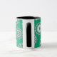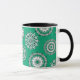 Eine 325 ml Tasse mit meinem Mandala Muster 1 auf grünem Hintergrund.