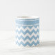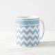 Eine stilvolle Coffee Tasse, die Sie persönlich gestalten können, mit einem Zickzack Muster in hellblau und weiß. Wenn Sie es vorziehen, keinen Text zu Ihrer Tasse hinzuzufügen, löschen Sie einfach den Text und verschieben das Muster nach oben, bis das schlichte blaue Band verschwindet, indem Sie die Schaltfläche Anpassen verwenden.