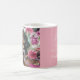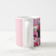 Tasse mit Schwarz-Bein-Cavalier-King-Charles spaniel Art Design. Florrosa Hintergrund. Text auf der Rückseite