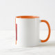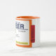 Tasse von Sonnenbrand für Bier. Schreibe dein eigenes Rezept! Fügen Sie Ihren Namen, Ihren Arzt, Ihren Lieblingsbier und sogar Ihre eigenen Anweisungen hinzu! Machen Sie es lustig! Mit lustigem Warnschild. Orangefarbener Hintergrund, der der Arzneimittelflasche ähnelt.