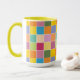 Spielvolle Springtime Schachbretts Kaffee Tasse Farbige karierte Kaffee Tasse mit verschiedenen Farbtönen von Gelb, Orange, Grüntöne, Lavendel und Blau. Passend zur Sammlung der Frühlingsfarben. Von celeste@khoncepts.com