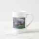 Von seiner romantischen Hüttensammlung bietet Ryan Todd Brucker diese reizend Knochen-China-Tasse an, die seine Malerei "Geburtstags-Hütte" kennzeichnet. Die Farben in dieser Malerei sind reich und magisch. Über der Fensterscheibe dieser entzückenden Hütte hinaus, glüht ein Geburtstagskuchen mit Kerzen. Der Künstler malte diese bestimmte Hütte für seine Mutter auf ihrem Geburtstag. Er würde ein schönes und durchdachtes Geburtstagsgeschenk für spezielles jemand machen (einschließlich selbst)! Er kann mit einer zusammenpassenden Teekanne und einer Platte kombiniert werden, um ein Set zu schaffen.