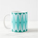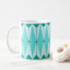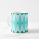 Diese geometrische Tasse von Diamonds & Sternexplosionen hat den ganzen Kitschcharm von etwas, das kitschig und charmant ist. Das Vintag inspirierte Design umfasst eine Mod, einen pfauenblauen Hintergrund mit hellblauen, lang gestreckten Hexagonen, mit türkisfarbenen Diamanten geschichtet, und pfauenblaue Sternexplosionen. Es ist ein Kaleidoskop der Retro-Güte! Das Design des Palm Spring aus den 1950er und 1960er Jahren sieht genauso aus, als ob es auf einem modernen Motel-Schild aus der Mitte des Jahrhunderts oder im Haus Ihrer Lieblings-Fernsehfamilie im klassischen Zuhause wäre.