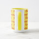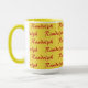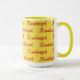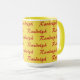 Name in dunkelrot auf gelbem Hintergrund. Personalisieren Sie sich mit dem Namen Ihrer Wahl und es wird in einem gestaffelten "halben Backstein"-Muster gekachelt.