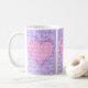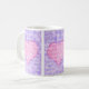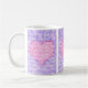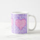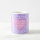 Eine hübsche Kaffee-Tasse für jemanden mit drei Tafeln, die ein rosa Herz auf violett-blauem Hintergrund enthalten. Die Worte "I Liebe you" sind im gesamten Design in weißer Schrift geschrieben.