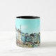 Tasse à café décorée du Vieux Bassin d'Honfleur (Normandie, France) dans un style aquarelle