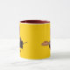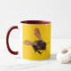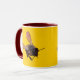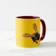 Fotografisches Bild von Honigbienen dupliziert auf beiden Seiten der Tasse. Gelber Hintergrund kann angepasst werden.