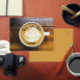 Tasse Kaffee Latte mit Leaf-Form Schaumstoff auf H Postkarte