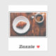 Tasse Kaffee und Croissant am rustikalen Tisch Aufkleber