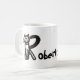 Name beginnt mit dem Buchstaben "R" (personalisieren Sie für den Rest des Namens - Standard für Roberto). Der Anfangsbuchstabe ist eine Hauptstadt R, die von einer Katze gebildet wird, deren Hinterbein nach außen gestreckt und schwarzer Schwanz bis zum Ohr gekrümmt ist.