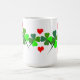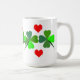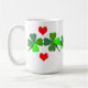 Digitales Muster bestehend aus zwei Kleeblatt-Paaren, die sich über zwei rote Herzen gegenüberstehen.
