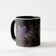 In die Liebe eingebunden. Dunkle Fraktal-Kunst mit einem lila Herz verstrickt mit Fraktal-Netzen mit Wasserreflektion