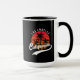Los Angeles Tasse mit einem Design, das einen Retro-Sonnenuntergang bietet. Dieses Design hat auch Kalifornien in einem handgeschriebenen Schriftart mit einem Swash-Schwanz-Glyphe für diesen stilvollen Retro-Look. Diese Tasse ist nur für Sie, wenn Sie aus Los Angeles kommen oder als Geschenk oder Andenken für jemanden.