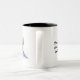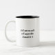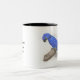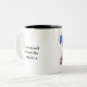 Anpassbare zweifarbige Tasse mit einem in farbigem Bleistift ausgeführten Ara und einem inspirierenden Vers.
