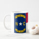 Genießen Sie Ihre Lieblingsgetränke mit einer Tasse unter der Flagge von North Carolina! Diese Tasse wurde mit viel Liebe zum Detail gestaltet und zeigt stolz die Flagge von North Carolina, mit einem blauen Feld mit einem weißen Stern und den Initialen "NC" in der Mitte, umgeben von zwei gelben Bars. Diese Tasse ist perfekt, um Ihrer Trinkbehälter-Kollektion eine Touch North Carolina Stolz hinzuzufügen. Sie ist funktionell und dekorativ zugleich. Diese Tasse aus robustem Material ist stabil und komfortabel zu halten. Seine lebendige Gestaltung und seine symbolische Darstellung machen es zu einer idealen Art, Ihre Liebe für den Staat der Teerrolle zu feiern.