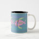 Tasse mit handgezapften, rosafarbenen Fischen mit lackiertem Wasser.