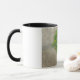 Tasse mit originellem Foto von Naturklee und kleinen gelben Blumen