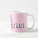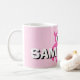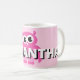 Personalisierte Kinder Tasse mit lustiger Eule und Name für Mädchen. Niedliche Geschenkidee zum Geburtstag von Kindern. Individuelles Mugdesign mit kleinen Cartoon Maskottchen. Benutzerdefinierte, gürtelrosa Hintergrundfarbe.