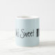 Hellblauer grauer Hintergrund mit handgeschriebenem, schwarzem Zitat mit dem Zitat "Zuhause Sweet Zuhause" | Tasse des Kaffees. Achten Sie auf diese und andere Wörter und Zitate aus Bauernhaus Living.