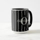 Überall auf dieser Tasse über Schwarz sind graue Streifen mit einem Interieur und einem schwarzen Griff zu sehen. Eine Monografie befindet sich in der Mitte, damit Sie Ihre persönlichen Wünsche erfüllen können. Hier sehen Sie ein Muster-Monogramm eines "O" und einen frischen Text, der "Oakland" über das O liest. Nimm dir etwas für deinen nächsten Sonntag in der Höhle. Anpassen oder kaufen, wie gezeigt.