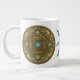 Dieses Fisces themed mandala verfügt über einen Aquamarinstein, umgeben von dem Symbol für das Zeichen, die Konstellation, und das alchemistische Symbol für Wasser zwischen Filigree und Weber. Diese Tasse ist in Jumbo, Espresso, Knochen-China und Styles erhältlich.
