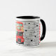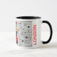Eine Tasse mit whimsical Stil zu feiern London heute und in der Vergangenheit, als der Routemaster Doppeldecker-Bus früher durch die Stadt gereist war und hunderttausende Passagiere beförderte. Fotografie und Design von © Caroline Webb, Alle Rechte vorbehalten.