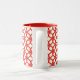 Rote dreidimensionale Ringe, die mit 3-D-Look verbunden sind, bilden ein Kettennetz. Rote Ringe auf weißem Hintergrund.