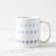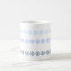 Schneeflocken in drei Blautönen, umgeben die Tasse in drei Bändern.