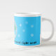 Der Schneemann schießt mit seinem Top-Hut auf den Schnee. Kiefern stehen im Hintergrund. Der dreidimensionale Globus hebt sich von der Hintergrundfarbe ab (Sie können ihn nach Ihren Wünschen anpassen/bearbeiten). Text mit Schneeflocken oben lautet: "Ein heißer Kakao würde jetzt gut laufen!" Weiße Schneeflocken fallen auf beiden Seiten der Schneekugel herab.