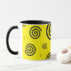 Diese 11-köpfige Tasse wurde entworfen, um Ihren Tee, Kaffee oder heiße Schokolade Zeit zu einer glücklichen Zeit zu machen. Es hat einen gelben Hintergrund und ein schwarz-wirbelfarbenes Muster, und der Griff und das Interieur passen zu den Wirbel. Diese Tasse ist das ideale Geschenk, um jemanden in deinem Leben glücklich zu machen.