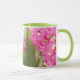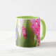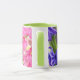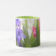 Tasse im Freien mit wunderschönen blauen, rosa und weißen Blume. Perfektes Geschenk für diejenigen, die Liebe Blumendesigns.