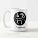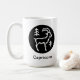 Capricorn - Zeichen des Zodiac - 22. Dezember bis 20. Januar. Grafische Darstellung einer Ziege und Bäume in einem schwarzen Kreis.