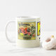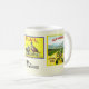 Die von Claremont Heritage entworfene Tasse des Upland CA-Obstkastenlabels zeigt 3 verschiedene Aufnahmen