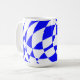 Überwachtes Muster in Blau und Weiß. Die optische Täuschung einer abgerundeten Kugel verzerrt die Quadrate um den Mittelpunkt der Tasse.
