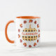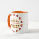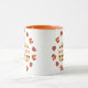 Herbstliche Tasse mit einem karierten Kürbis, umgeben von Herbstlauben mit einem Namen, der durch den Kürbis läuft. Diese Tasse kann mit Ihrem eigenen Namen personalisiert werden.
