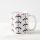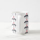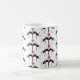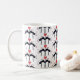 Tasse aus schwarzem, rotem und weißem Kaffee mit schwarzen Katzen und Herzen.